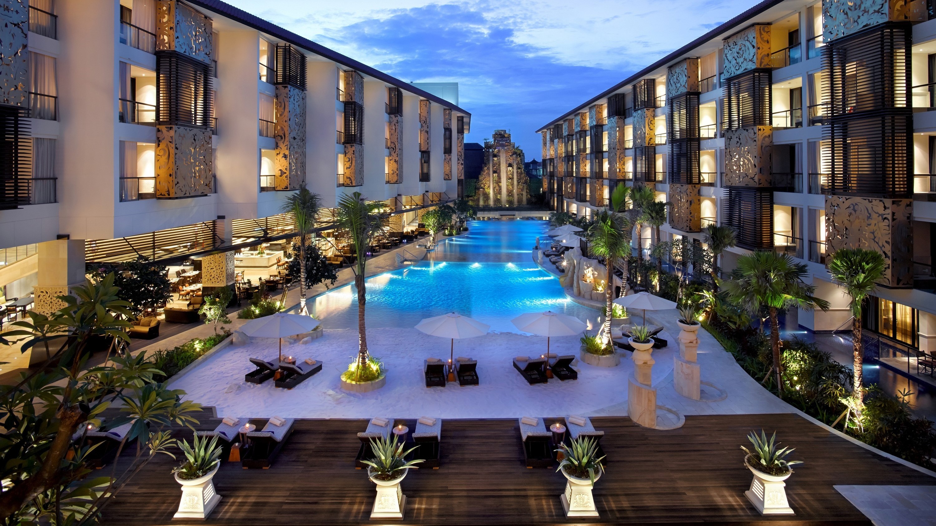 더 트랜스 리조트 발리는 스미냑에 위치하고 있으며, 객실 수 200여개를 보유한 5성급 호텔입니다. 스미냑 스퀘어 쇼핑몰과 해변, 다양한 레스토랑 및 바, 상점, 마사지샵 등이 도보권에 있어 접근성이 매우 뛰어납니다. 응우라라이 국제공항까지는 약 15킬로미터 거리이며, 도심까지 도보로 약 10분 정도 소요됩니다. 모든 객실에는 발코니시설이 마련되어 있어 빼어난 수영장 전망을 즐기실 수 있으며, 메인 수영장 시설과 함께 피트니스 센터 인근에는 자쿠지 풀 등이 마련되어 있습니다. 8실 규모의 스파시설과 사우나 스팀룸, 키즈클럽 등 부대시설 또한 잘 갖춰져 있어 커플이나 가족 단위 여행객 모두에게 적합한 휴양지 시설입니다.